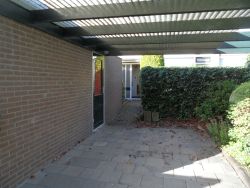De voortuin is voorzien van een stenen berging en een carport. De achtertuin is tevens voorzien van een poort welke direct toegang geeft tot het Dorestad plantsoen.